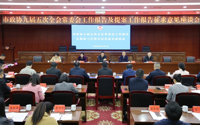 12月1日,市政协召开九届五次会议常委会工作报告及提案工作报告征求意见座谈会,征求各县市区政协和各民主党派市委会、市工商联、界别召集人代表的意见建议。市政协副主席、党组副书记秧励出席。