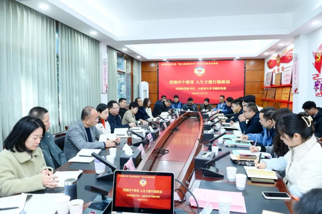 根据主题教育工作安排,结合市委“能力素质提升年”行动要求,12月1日上午,市政协党组书记、主席胡立安以“把握四个维度 方能行稳致远”为题,为市政协机关干部职工讲课。