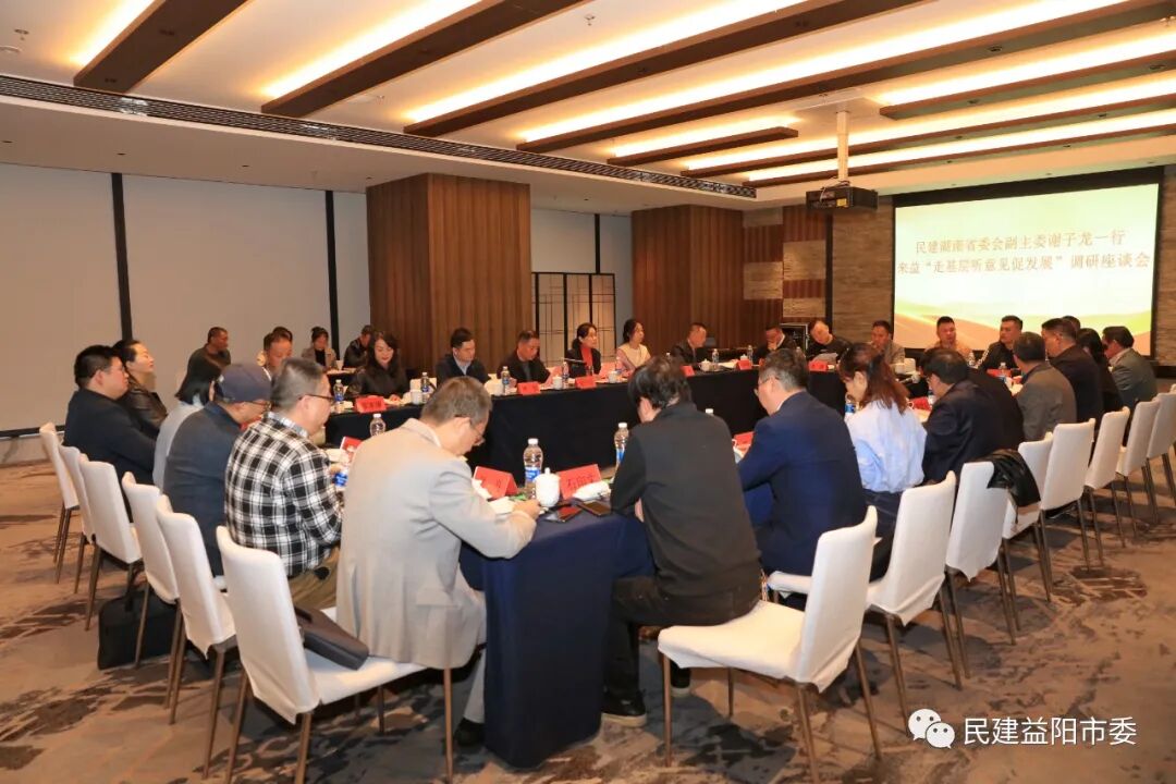 12月8日,民建省委会副主委、老百姓大药房连锁股份有限公司董事长谢子龙率队赴益阳开展“走基层听意见促发展”调研活动,了解民建市级组织自身建设及履职情况,听取基层会员对民建省委会领导班子及省委会工作的意见建议,指导推进“凝心铸魂强根基、团结奋进新征程”主题教育暨“五学两助”活动开展。益阳市政协副主席、民建益阳市委会主委曾斌全程陪同调研。民建省委会社会服务处、组织处,中共益阳市委统战部副部长车吉新,民建益阳市委会市委委员、支部主委和骨干会员30余人参加调研座谈。