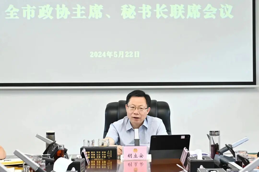 5月22日,全市政协主席、秘书长联席会议召开,市政协主席胡立安出席。他强调,要以贯彻落实省政协“委员双考”“两力两率”“三项机制”三个方面的保障机制为抓手,治“五症”、祛“四病”,提高“两支队伍”整体素质、整体效能。要积极发动服务委员主动参加政协云履职,强化政协云功能运用,创新丰富政协云履职新内容、新形式,真正将政协云运用转化为赋能政协工作和委员履职质效提升的实在增量。