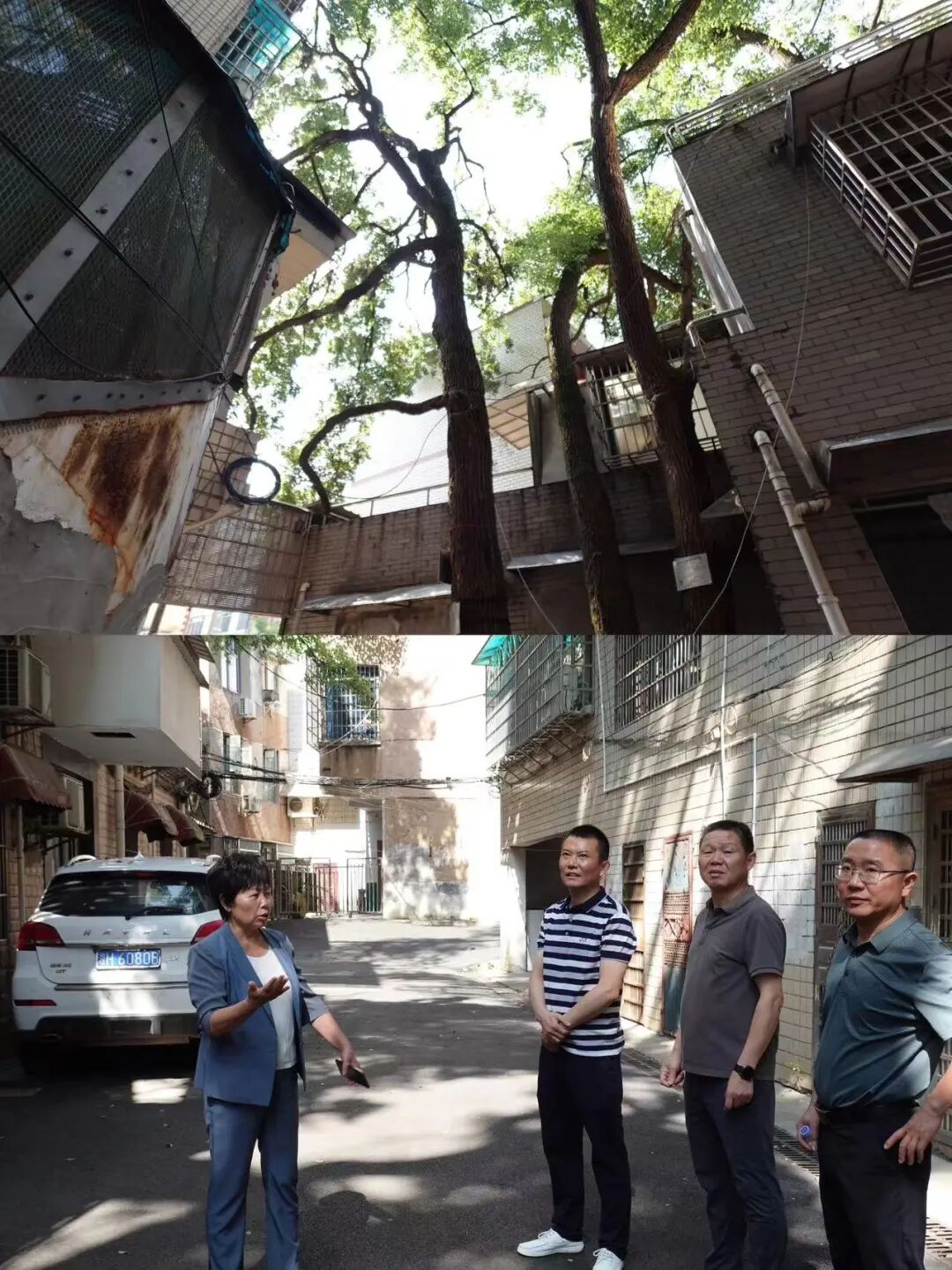 在桃花仑社区,李赛和委员们实地察看了桃花宾馆家属楼、茶叶电梯巷、茶叶公司家属区和房产建设巷等区域。桃花宾馆1栋家属楼底层出现大面积开裂、凹凸不平,存在地面塌陷或房屋倒塌等安全隐患。茶叶电梯巷消防通道堵塞,小摊贩长期聚集,叫卖声干扰了居民的正常生活。茶叶公司家属区地下停车场大量积水,钢棚多处破损,存在垮塌等安全隐患。房产建设巷的百年古树是市级重点保护树木,但树木的生长影响了临近居民楼高层住户的日常生活,特别是遇到冰冻天气,高层树枝断裂,同样存在安全隐患。委员们将这些问题一一记录,并与居民们交流,探讨解决办法。