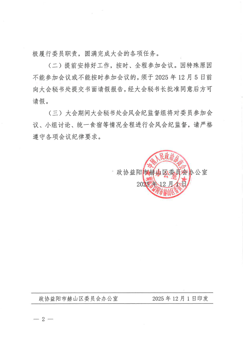 关于召开政协益阳市赫山区第六届委员会第四次会议的通知