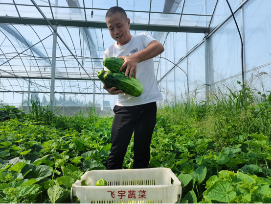 图一:吴四华在大棚地里采摘菜瓜