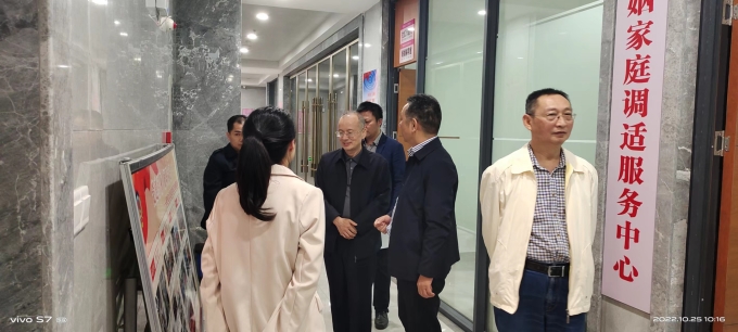 10月25日上午,省政协办公厅二级调研员杨吉祥、省政协四级调研员舒柏儒来到维护妇女儿童权益委员工作室实地考察委员工作室建设运行情况。市政协领导吴光荣等参加了实地考察,县政协主席周尚亮、副主席杨洪等陪同考察。