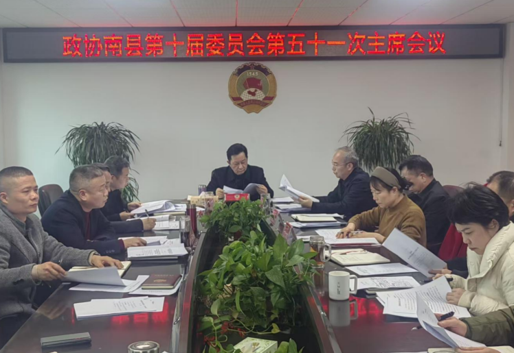 2026年2月25日下午,县政协主席周尚亮主持召开政协南县第十届委员会第五十一次主席会议。副主席杨洪、黄艳涛、高文斌、曾彩虹、王金辉,秘书长尚光辉出席会议。