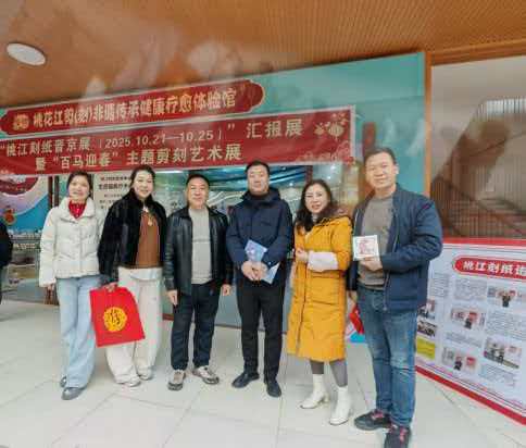 其间,考察团还前往桃花江竹海景区,参加“向往新生活 嗨购桃花江”年货节巡游活动。在“桃江刻纸晋京汇报展”暨“百马迎春”剪刻艺术展现场,精美的非遗技艺令乡友们驻足流连。剪刻中心向客人们赠送了寓意吉祥的“龙”“马”生肖刻纸作品及新书《桃江刻纸》,让这份独特的家乡文化伴手礼成为连接武汉与桃江的情感纽带。