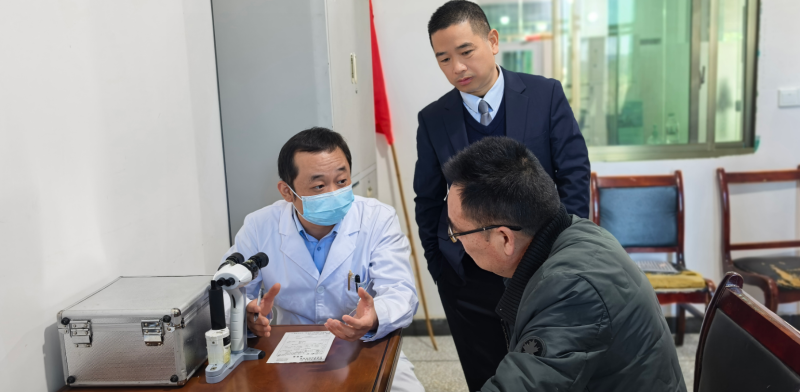 除了重点关注“一小”,“一老”眼健康问题也是姚理龙聚焦的重点。在老年白内障防治方面,他调研发现许多老年患者因认知不足、经济困难等原因延误治疗。为此,他广泛开展医患交流活动,争取救助政策,防止群众因眼病返贫。针对不少老年白内障患者担心手术疼痛的困扰,医生一边检查,一边耐心给患者解释。