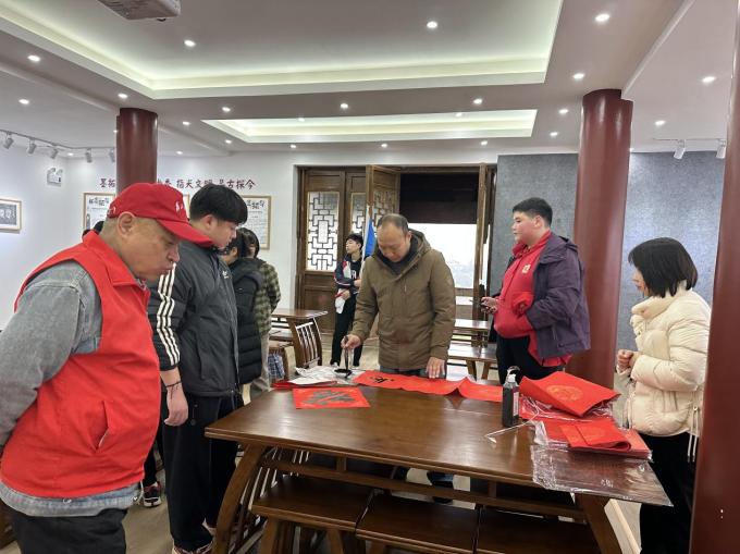 活动现场喜气洋洋、墨香四溢。受邀书法家们挥毫泼墨、笔走龙蛇,将新春祝福凝于笔端,为志愿者与周边居民书写寓意吉祥的春联与“福”字。一幅幅红火喜庆的春联、一个个饱满大气的福字接连送出,现场掌声、笑声不断,洋溢着欢乐祥和的节日氛围,让大家在墨香中感受浓浓年味。