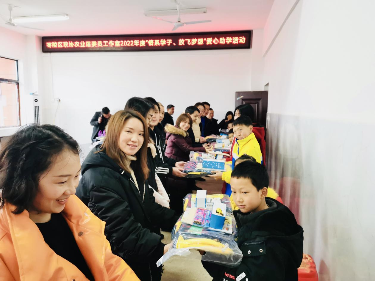 活动中,区政协农业届委员工作室委员们为15名品学兼优的困难学生送去了助学金、书包、文具、画册、水杯、新衣服等,同时鼓励他们要勤奋刻苦,努力学习,以优异的成绩回报社会。