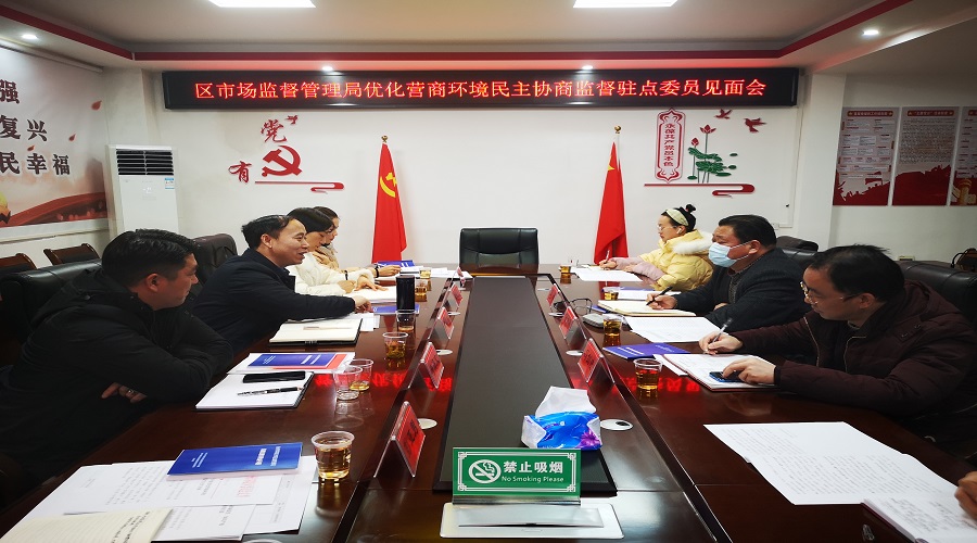 2月25日,区政协副主席周军松带领优化营商环境民主协商监督驻点委员和区政协委员学习联络委工作人员到区市场监督管理局召开驻点委员工作见面会。