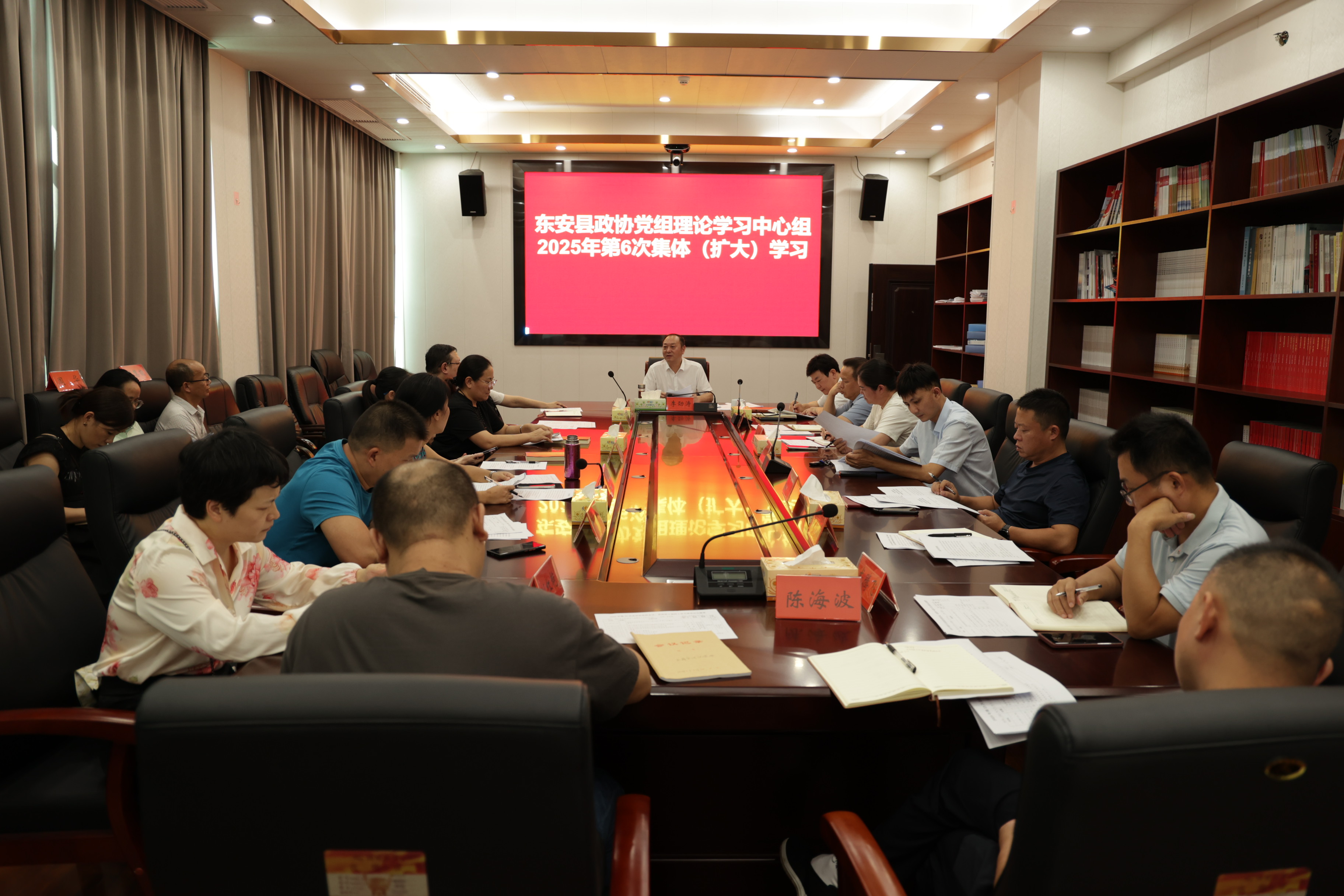 9月28日下午,东安县政协党组理论学习中心组开展第6次集体(扩大)学习。县政协党组书记、主席李劲涛主持会议并讲话。