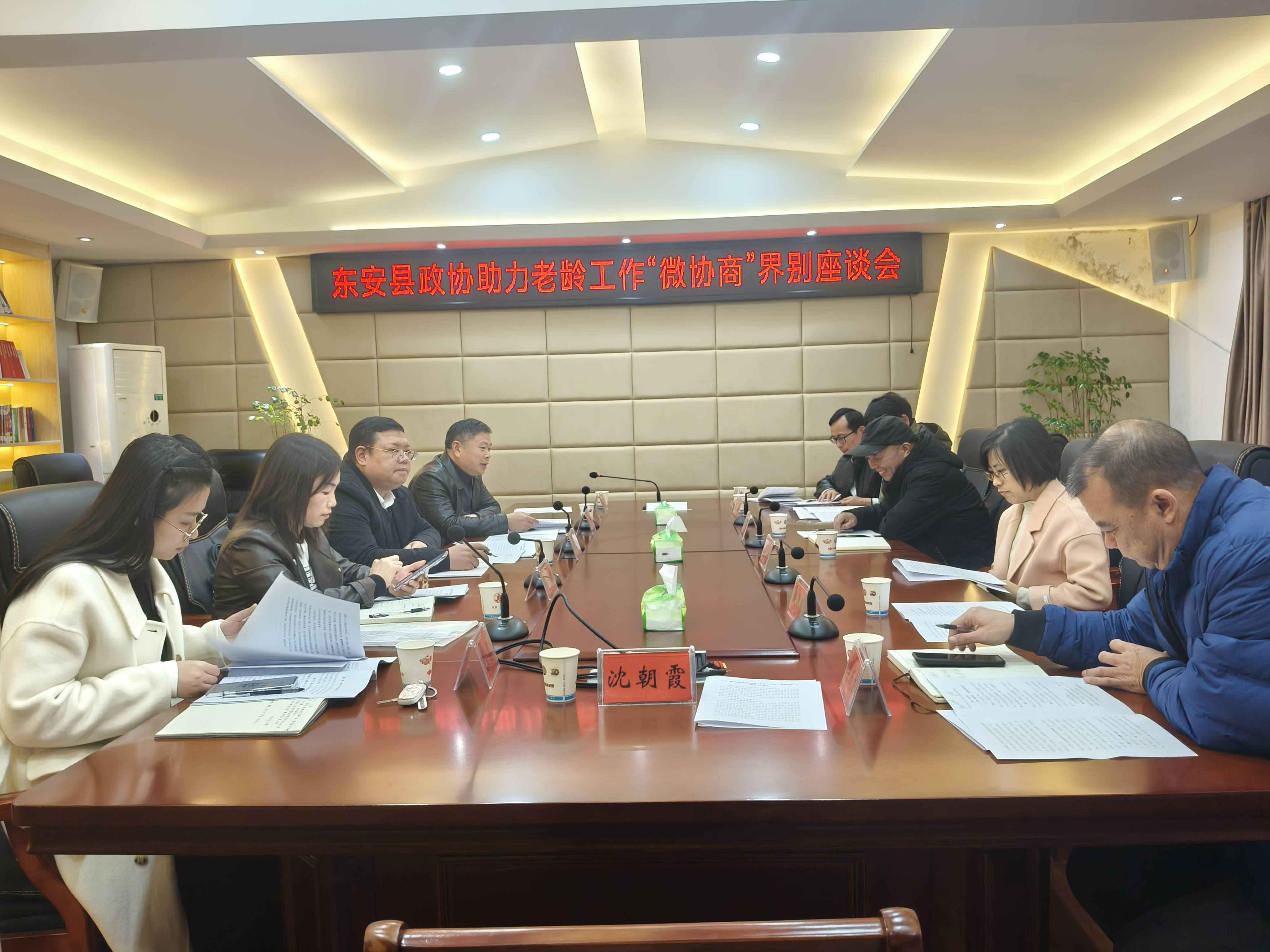 12月3日,东安县政协组织召开助力老龄工作“微协商”界别座谈会。县政协副主席、县民政局局长刘国波出席,少数民族界、宗教界政协委员,县民政局、县卫生健康局等单位分管负责同志参会。