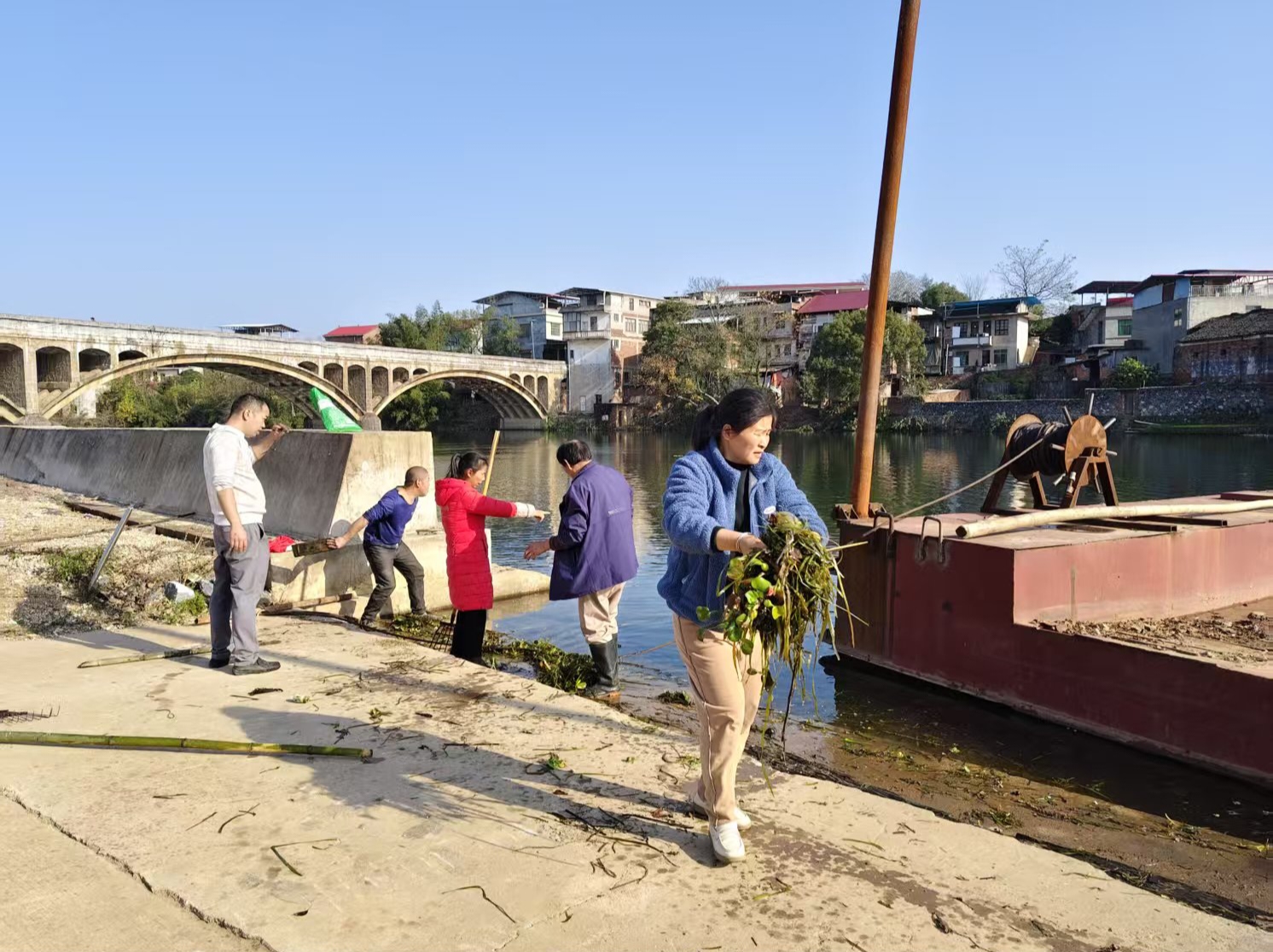当天,委员们来到紫水河沿岸,沿着河道岸线开展拉网式检查,重点查看水体水质、岸线保洁、水生植物生长及基础设施维护等情况。针对巡查中发现的河道边杂草堆积、零星漂浮垃圾等问题,委员们当即拿起工具,与工作人员一同清理水生杂草、捡拾垃圾,同时详细记录问题点位,现场研讨整改措施。过程中,委员们还与周边居民、河道管护人员交流,了解日常管护难点,收集生态保护的意见建议。