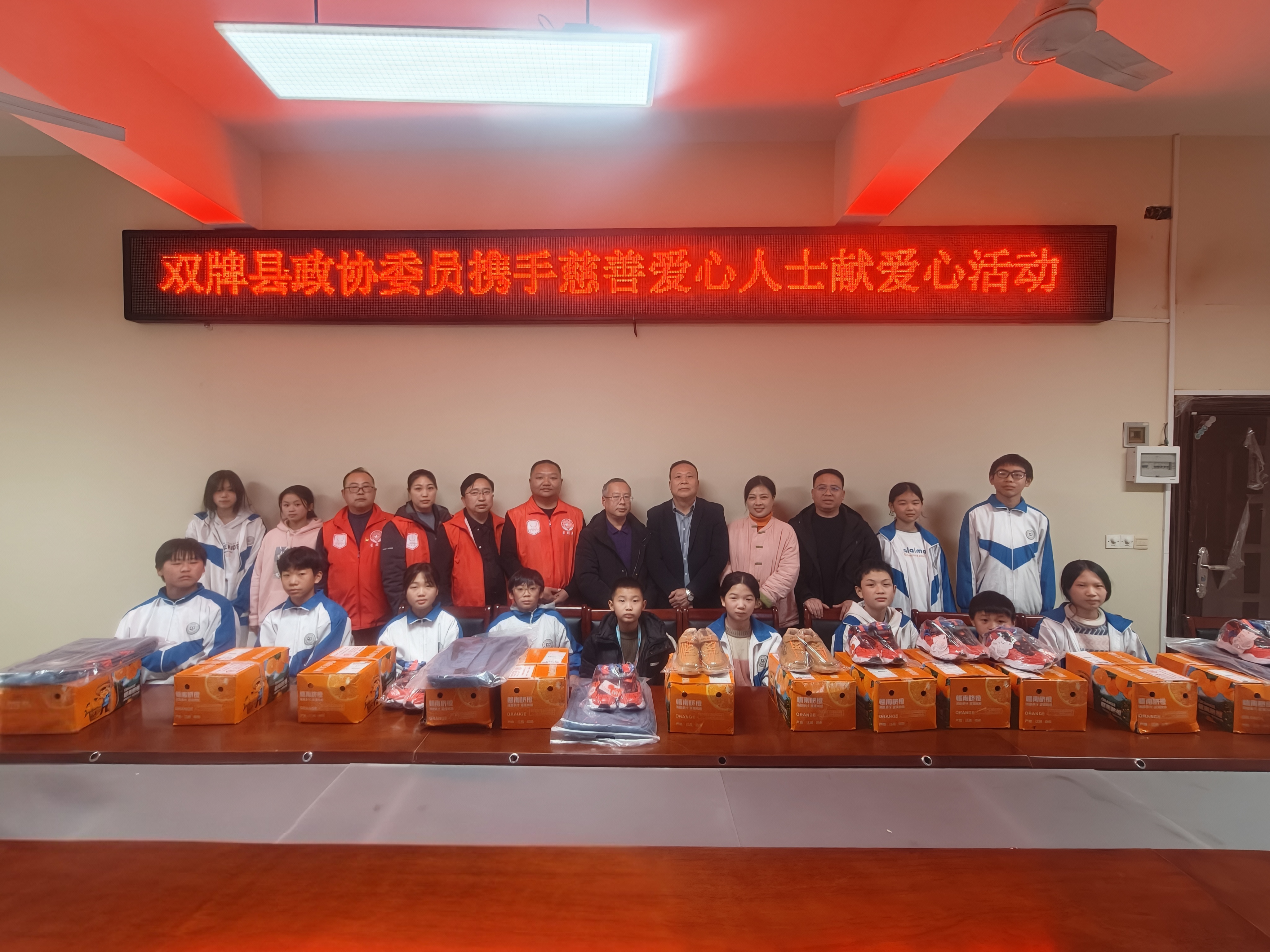 12月17日,双牌县政协委员与爱心人士到双牌县一中开展献爱心活动,为该校部分困难家庭学生送去温暖和关怀。