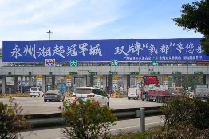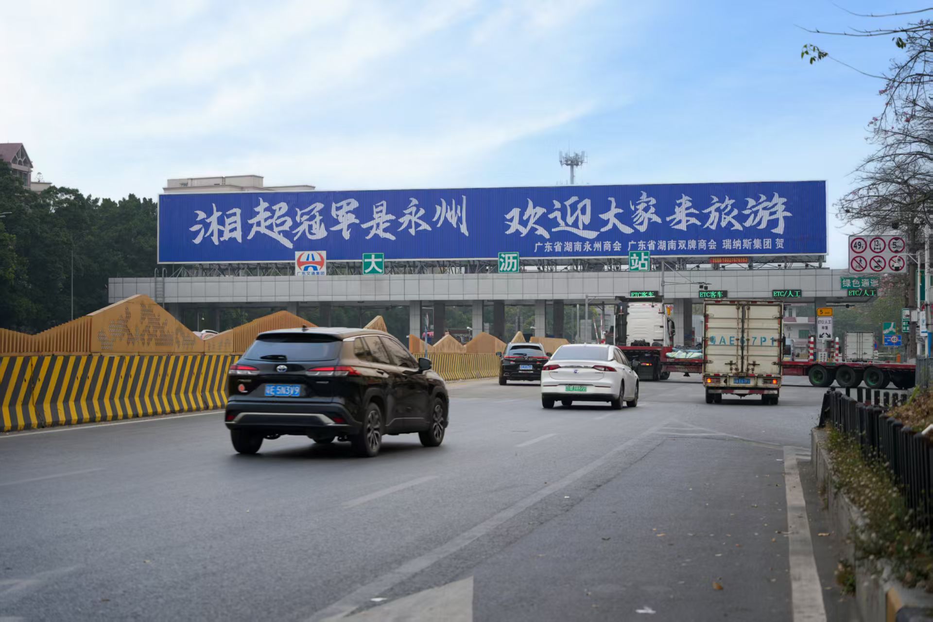 近日,在广东省佛山大沥高速出口,“永州湘超冠军城 双牌‘氧都’等你来”“湘超冠军是永州 欢迎大家来旅游”的巨型广告牌格外醒目,正反两面近700平方米的展示空间,正为“湘超冠军城”永州倾情邀约。