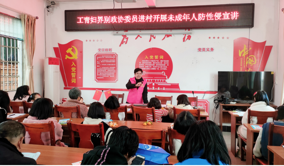 为提高未成年人人身安全防范意识,普及实际有效的保护方法,努力营造关心儿童、爱护儿童的社会环境,2月1日上午,道县政协工青妇界别委员携手县妇联走进营江街道上汶村开展“利剑护蕾·守护花开”未成年人性教育公益课堂,30余名家长和孩子参加活动。