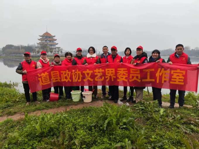3月4日,值61个“学雷锋纪念日”即将到来之际 ,道县政协文艺界委员工作室委员携手县河小青志愿者,走进西州公园段潇水河边,开展保护母亲河净滩活动。省政协委员、道县政协副主席朱渝娟参加活动。