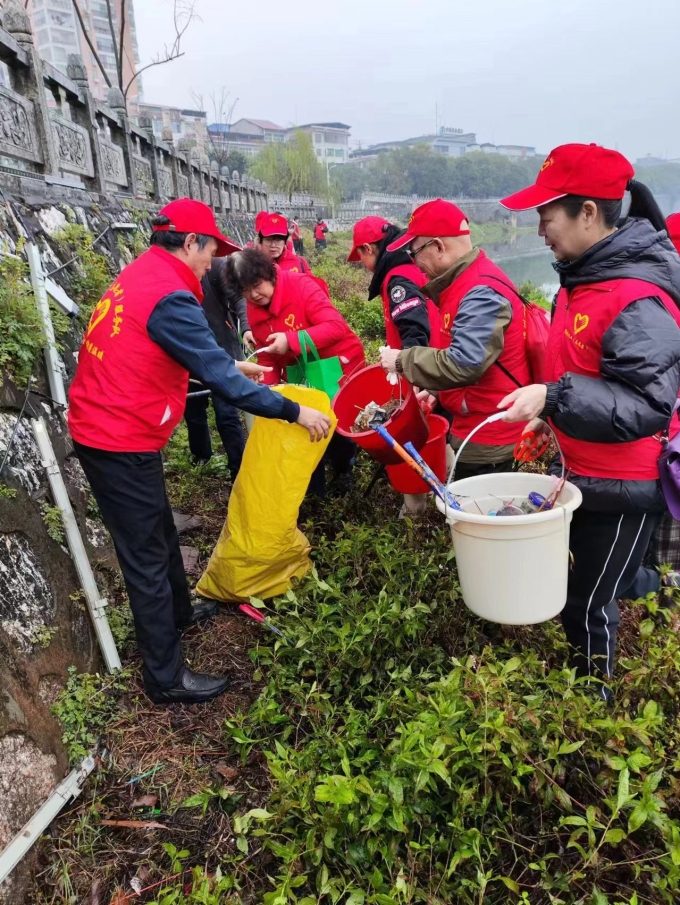 活动中,大家身穿红马甲,拿着垃圾桶、火钳等工具,分工协作,忙得不亦乐乎。有的捡拾河岸的水瓶、烟头、纸屑等垃圾,有的清理河面上的杂草枯枝、塑料瓶等漂浮物,不一会儿,河道环境焕然一新。随后,大家察看了河水水质、河道治理等情况,向群众宣传了爱护环境、保护水资源等环保知识,引导群众共同保护潇水母亲河的生态环境,确保岸净、河畅、水清。