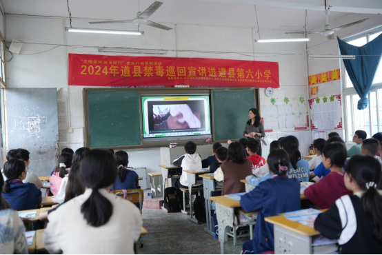 为提升全县青少年识毒、防毒、拒毒、意识和能力,4月23日,道县政协工青妇界别委员工作室联合道县禁毒宣教中心前往道县第六小学开展禁毒巡回宣讲直播活动,50余名学生代表在禁毒讲师的带领下,开始了一场干货满满的禁毒法制知识学习“盛宴”。与此同时,全县中小学3000余名学生,在不影响正常授课的情况下,通过多媒体教室实时观看了直播。