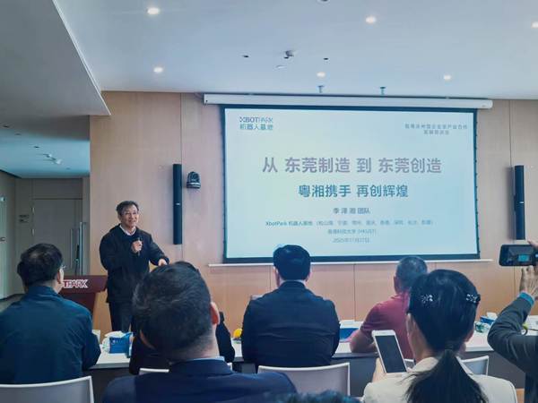 李泽湘是从湖南省蓝山县走出的杰出人士,在机器人、制造科学与自动化领域享有很高的学术声誉,被称为“大疆教父”。他是松山湖国际机器人产业基地、宁波智能技术研究院等多个科创基地的发起人,目前松山湖国际机器人产业基地已孵化了140多家硬科技公司,总估值超2000亿元。李泽湘教授始终心系故土,长期以来非常关心和支持家乡经济社会发展,积极传播科研转化理念,推动成立了湘江科技创新院并担任院长。特别是在推动永清广高铁规划建设中,多次利用个人影响力奔走呼吁、献智出力。座谈会上,李泽湘教授发表题为《从东莞制造到东莞创造——粤湘携手,再创辉煌》的主题分享。随后,粤港澳大湾区的湘籍优秀企业家、政府代表、高校及科研机构专家等,围绕推动产学研用深度融合,促进区域协同创新与产业合作展开深入交流,共绘高质量发展新蓝图。