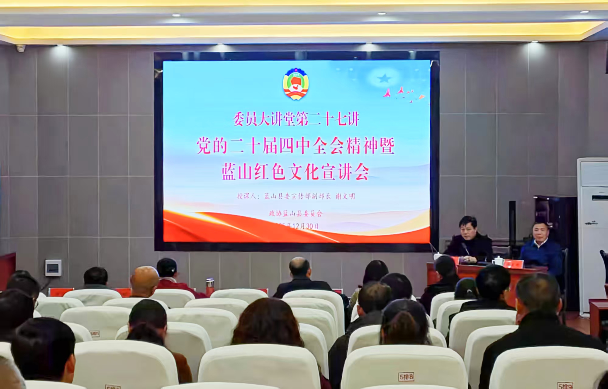 12月30日下午,县政协“委员大讲堂”第二十七讲精彩开讲,县政协副主席黄积文主持并讲话。