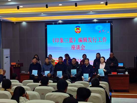 《印象三蓝》一书由县政协与县文联共同编印,是一本关于蓝山文化的图文并茂的读物。会议汇报了《印象三蓝》一书编撰情况,《印象三蓝》的部分作者及图片拍摄者作采风和创作感想发言;随后,县政协、县委宣传部、县文联相关部门负责人现场向县教育局、文旅广体局、党史研究室、新华书店、塔峰镇、图书馆、农商行等单位赠送了书籍。