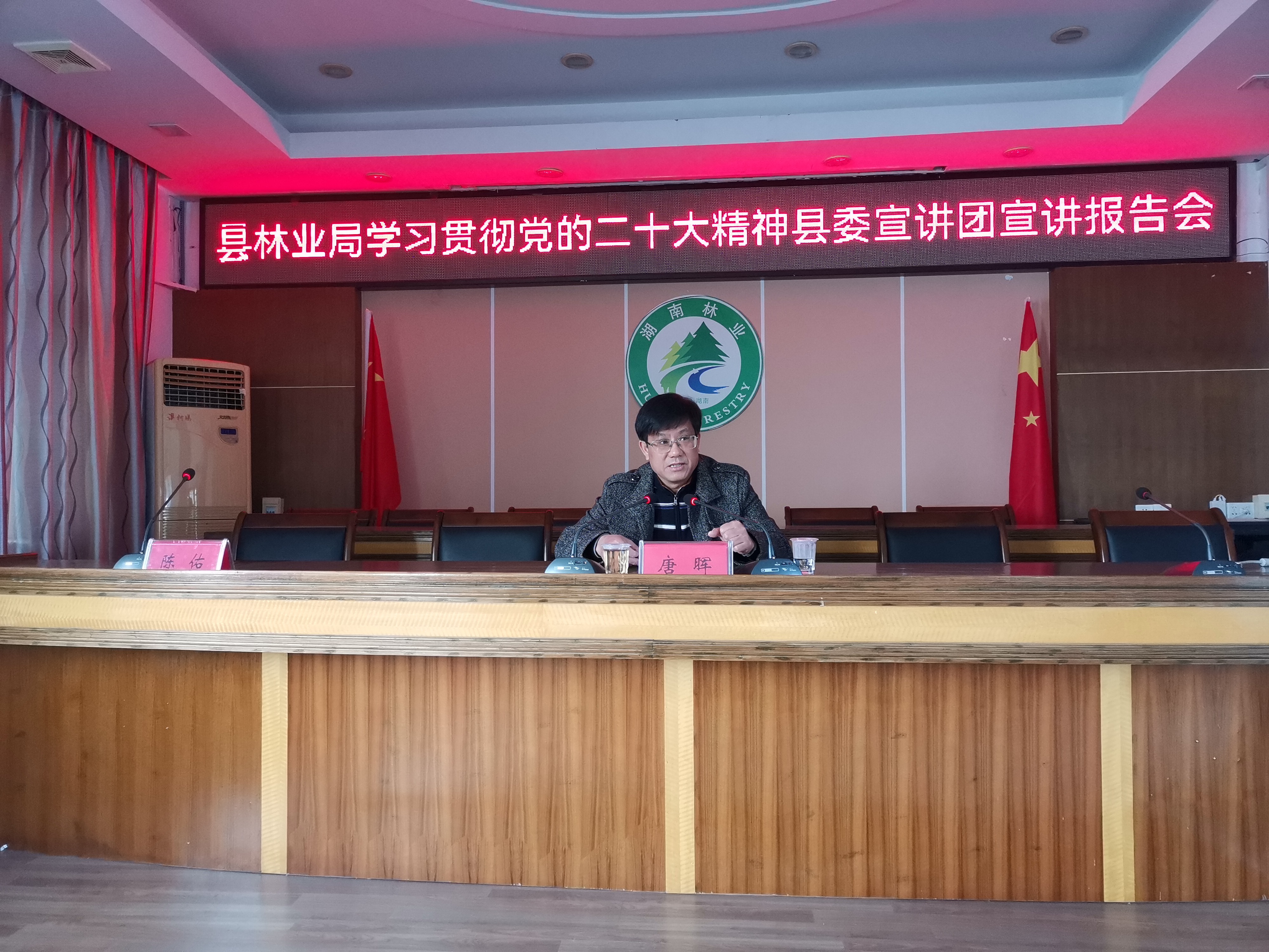 12月19日,县政协党组副书记、副主席唐晖到林业局开展党的二十大精神宣讲。