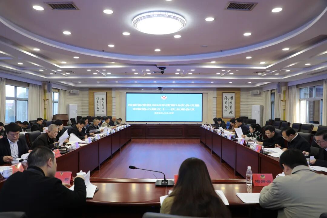 12月9日,市政协党组书记、主席谢景林主持召开市政协党组2025年度第18次会议暨市政协六届五十一次主席会议。市政协副主席潘衡湘、魏秋云、蒋井泉、韩顺华、高守凯,秘书长唐海涌出席会议。