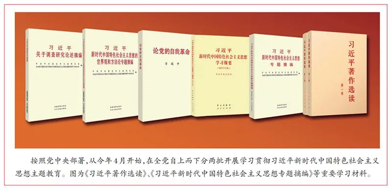 “以县处级以上领导干部为重点在全党深入开展学习贯彻新时代中国特色社会主义思想主题教育,是贯彻落实党的二十大精神的重大举措,对于统一全党思想、解决党内存在的突出问题、始终保持党同人民群众血肉联系、推动党和国家事业发展,具有重要意义。”“我们要以这次主题教育为契机,加强党的创新理论武装,不断提高全党马克思主义水平,不断提高党的执政能力和领导水平,为奋进新征程凝心聚力,踔厉奋发、勇毅前行,为全面建设社会主义现代化国家、全面推进中华民族伟大复兴而团结奋斗!” 真理之光照耀复兴征程,伟大事业昭示思想力量。党的十八大以来,以习近平同志为主要代表的中国共产党人,坚持马克思主义基本原理同中国具体实际相结合、同中华优秀传统文化相结合,科学回答了新时代坚持和发展什么样的中国特色社会主义、怎样坚持和发展中国特色社会主义,建设什么样的社会主义现代化强国、怎样建设社会主义现代化强国,建设什么样的长期执政的马克思主义政党、怎样建设长期执政的马克思主义政党等重大时代课题,创立了习近平新时代中国特色社会主义思想。习近平新时代中国特色社会主义思想,是当代中国马克思主义、二十一世纪马克思主义,是中华文化和中国精神的时代精华,实现了马克思主义中国化时代化新的飞跃。新时代十年伟大变革,根本在于有习近平总书记作为党中央的核心、全党的核心掌舵领航,在于有习近平新时代中国特色社会主义思想科学指引。实践雄辩证明,“两个确立”是新时代党和国家事业取得历史性成就、发生历史性变革的决定性因素,是党和人民应对一切不确定性的最大确定性、最大底气、最大保证。“党的理论创新每前进一步,理论武装就要跟进一步。”党的二十大明确要求以县处级以上领导干部为重点在全党深入开展主题教育。今年3月30日,中共中央政治局召开会议,决定从4月开始,在全党自上而下分两批开展学习贯彻习近平新时代中国特色社会主义思想主题教育。当天下午,中央政治局就学习贯彻习近平新时代中国特色社会主义思想进行第四次集体学习,充分发挥示范作用,推动全党在主题教育中深入学习贯彻习近平新时代中国特色社会主义思想,打牢思想理论基础。4月3日,学习贯彻习近平新时代中国特色社会主义思想主题教育工作会议在北京召开,习近平总书记出席会议并发表重要讲话。讲话从新时代新征程党和国家事业发展全局的战略高度,深刻阐述开展主题教育的重大意义和目标要求,对主题教育各项工作作出全面部署,为全党开展主题教育提供了根本遵循,是一篇马克思主义纲领性文献。连日来,第一批学习贯彻习近平新时代中国特色社会主义思想主题教育全面启动、有序开展。广大党员、干部通过多种形式深入学习领会习近平总书记在主题教育工作会议上的重要讲话精神,不折不扣抓好贯彻落实。各地区各部门各单位把高质量开展好主题教育作为一项重大政治任务,高度重视、精心组织、系统推进。当前,按照习近平总书记重要讲话精神和党中央部署要求,学习贯彻习近平新时代中国特色社会主义思想主题教育正在扎实推进、不断走深走实。要把持续深入学习贯彻习近平总书记这篇重要讲话精神,同学习党的二十大报告、学习党章、学习《习近平著作选读》、学习《习近平新时代中国特色社会主义思想专题摘编》、学习总书记最新讲话精神结合起来,坚持不懈用习近平新时代中国特色社会主义思想凝心铸魂,推动全党更加自觉深刻领悟“两个确立”的决定性意义,增强“四个意识”、坚定“四个自信”、做到“两个维护”,切实把主题教育成效转化为以中国式现代化全面推进强国建设、民族复兴的强大力量。“开展主题教育是今年党的建设的重大任务。各级党组织要坚决贯彻落实党中央的工作部署,教育引导党员、干部在以学铸魂、以学增智、以学正风、以学促干上下功夫见实效。”4月13日,广东广州,习近平总书记在主题教育启动后的第一次外出调研中,再次强调开展主题教育的重要意义,并围绕“以学铸魂”提出明确要求。注重思想建党、理论强党,是我们党的鲜明特色和光荣传统。毛泽东同志曾说过:“掌握思想教育,是团结全党进行伟大政治斗争的中心环节。如果这个任务不解决,党的一切政治任务是不能完成的。”在学习贯彻习近平新时代中国特色社会主义思想主题教育工作会议上的重要讲话中,习近平总书记深刻指出:“我们党始终高度重视理论武装,每逢重大历史关头,都要用党的创新理论统一全党思想,每次党内集中教育也都坚持把理论学习作为首要任务并贯穿始终,为全党团结统一奠定坚实思想基础。”纵观党的历史,坚持用马克思主义中国化时代化最新成果武装全党、指导实践、推动工作,是我们党创造历史、成就辉煌的一条重要经验。延安整风作为一次马克思主义思想教育活动收到巨大成效,全党在毛泽东思想的基础上达到空前的统一和团结,为夺取抗日战争和解放战争的胜利、建立新中国提供了有力保证。改革开放以来,通过开展整党、“三讲”教育、先进性教育活动、学习实践科学发展观活动等,有力推进了党的建设新的伟大工程。科学理论指引航向,思想洗礼一以贯之。党的十八大以来,以习近平同志为核心的党中央,直面新形势新任
