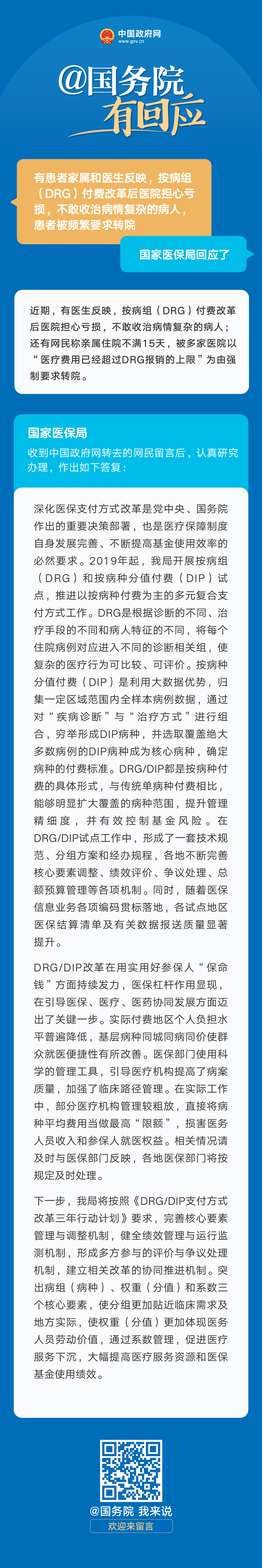 国家医保局收到中国政府网转去的网民留言后,认真研究办理,作出如下答复: