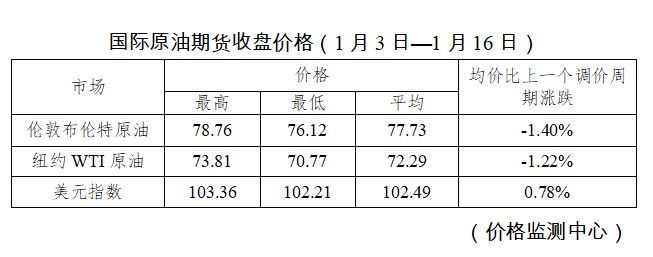 据国家发展改革委价格监测中心监测,本轮成品油调价周期内(1月3日-1月16日)国际油价在震荡中小幅下降。平均来看,伦敦布伦特、纽约WTI油价比上轮调价周期下跌1.31%。
