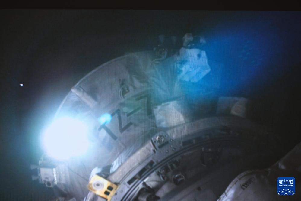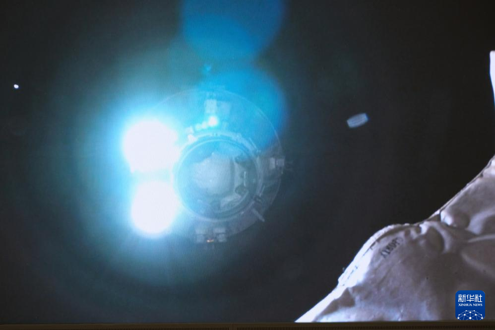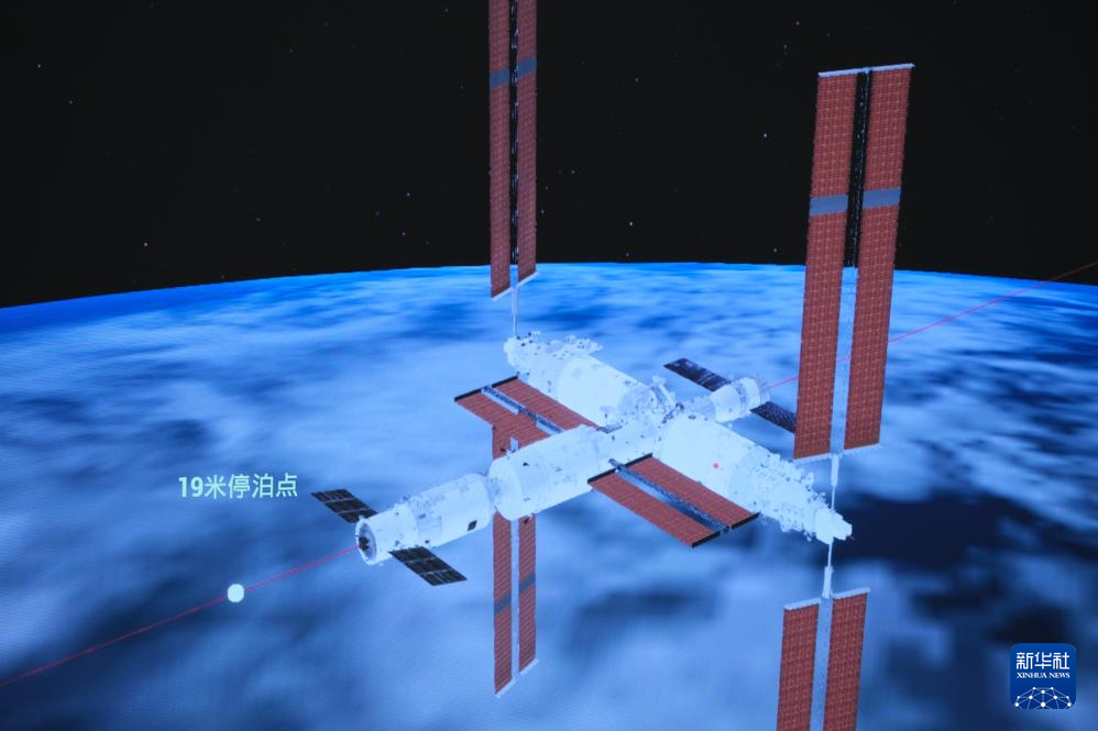 1月18日在北京航天飞行控制中心拍摄的天舟七号货运飞船向空间站组合体靠拢的画面。新华社发(韩启扬 摄)