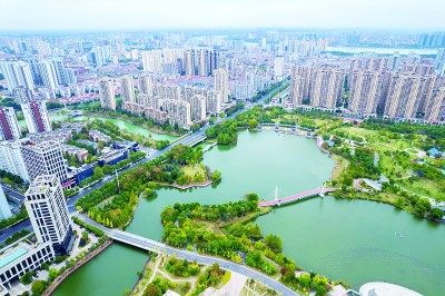 湖南省常德市白马湖文化公园及周边景色。新华社发