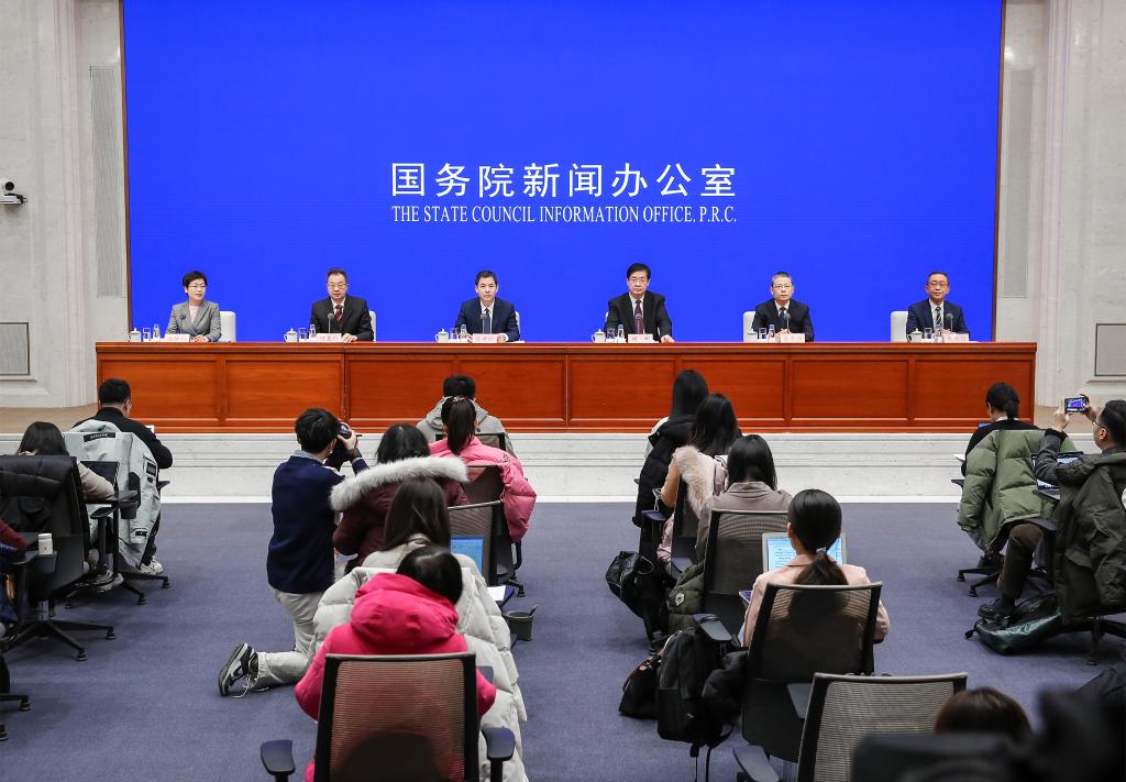 1月22日,国务院新闻办公室在北京举行国务院政策例行吹风会现场。新华社发