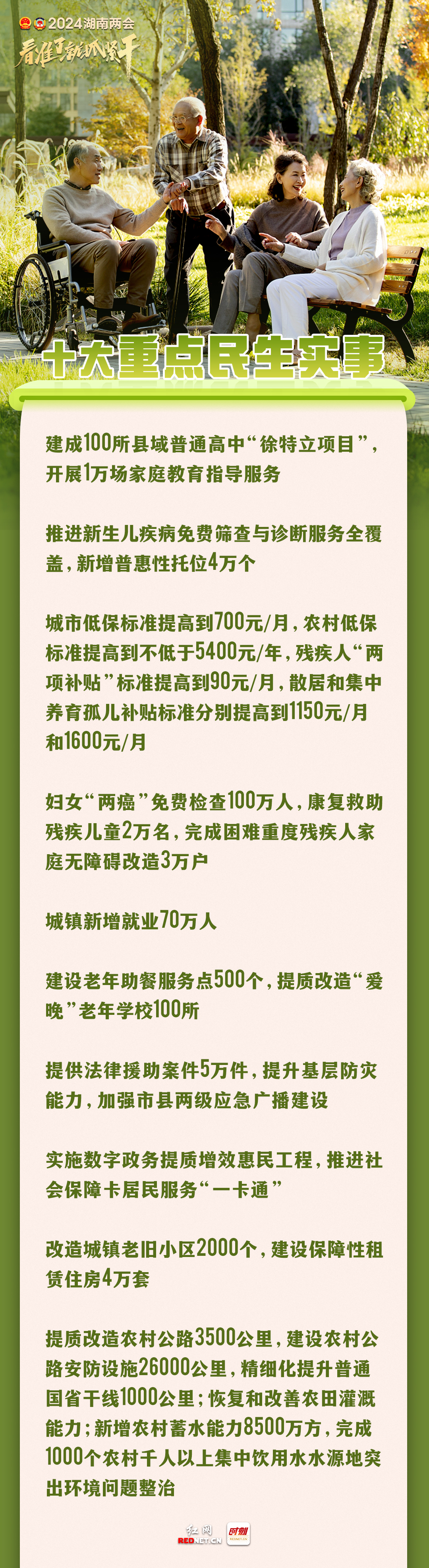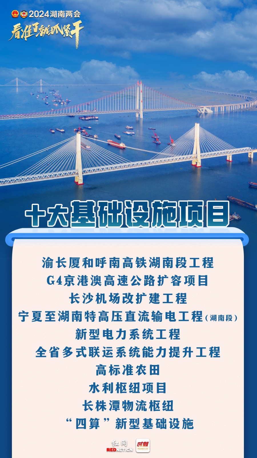 1月24日上午,湖南省十四届人大二次会议在长沙开幕。省长毛伟明代表省人民政府作工作报告。报告提出要着力推进十大基础设施项目、十大产业项目,大力推进十大技术攻关项目,持续办好十大重点民生实事。一起来看看!