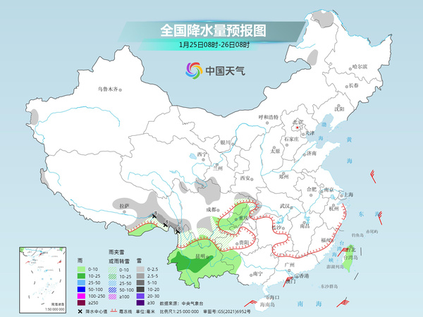今天(1月25日),全国大部将维持雨雪稀少的天气格局,气温也将逐渐回升。不过,西南、华南西部部分地区降水依然频繁,川西高原等地或现小到中雪,气温持续低迷,湿冷感明显,公众需注意保暖。
