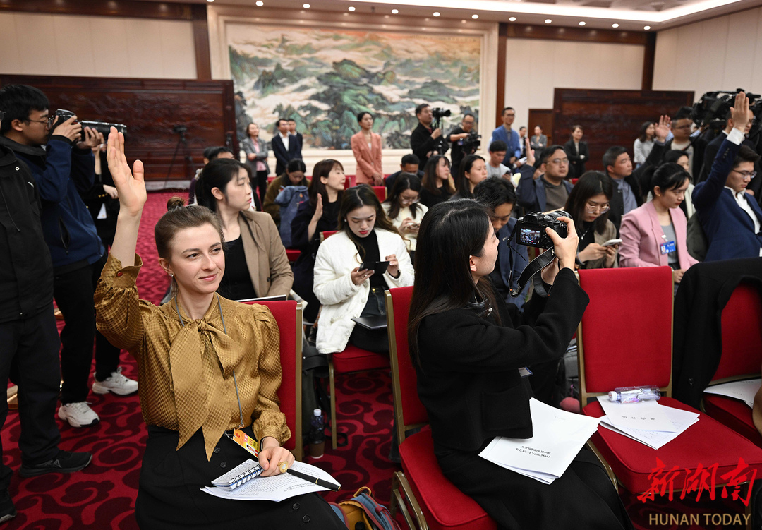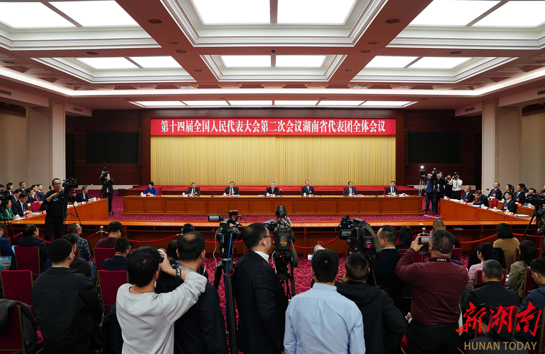 (3月7日上午,湖南代表团在驻地举行第四次全体会议,并向中外媒体开放。)