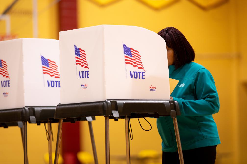 3月5日,选民在美国弗吉尼亚州彼得斯堡的投票点参与投票。新华社发(温斯特德·巴恩斯摄)