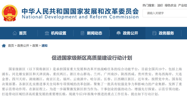 国家发改委近日发布《促进国家级新区高质量建设行动计划》,从3个方面明确多项重点任务,推动国家级新区努力打造高质量发展引领区、改革开放新高地、城市建设新标杆。包括湖南湘江新区在内的19个国家级新区迎重磅政策利好。