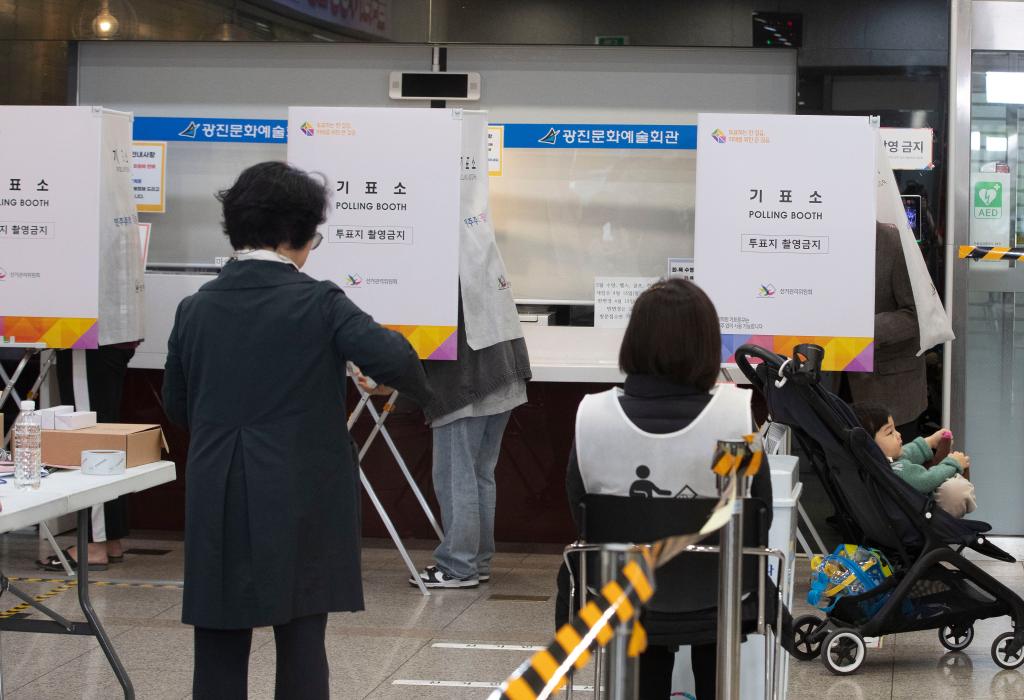 4月10日,选民在韩国首尔市一处投票站投票。新华社记者姚琪琳摄