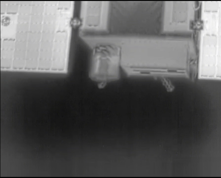 2024年4月3日,天都二号拍摄双星组合体成功实施双星分离视频截图。(深空探测实验室供图)