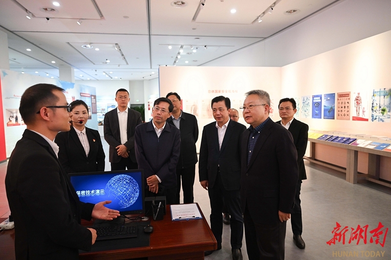走进展厅,沈晓明仔细观看展陈内容,听取情况介绍。来到城市运行安全板块,沈晓明察看了城市运行安全智能管理系统,了解隐患排查、监测预警和联动处置等情况,指出要聚焦城市运行安全方面存在的突出矛盾和瓶颈问题,深入排查消防、燃气、人员密集场所、城市内涝等领域风险隐患,切实筑牢城市运行安全“生命线”。在察看地质灾害沙盘模型时,沈晓明详细询问全省地质灾害监测点分布情况,要求提高监测覆盖率,通过技防手段提升预警能力,更好保障群众生命财产安全。参观中,沈晓明指出,要牢固树立大安全理念,自觉把安全发展贯穿经济社会发展各领域全过程,扎实防范化解各类安全风险隐患,着力建设更高水平的平安湖南。要加强科技赋能,提升风险隐患实时监测、及时预警、危机管理等能力,着力防范网络数据、人工智能等安全风险,不断提升维护国家安全的能力水平。要广泛开展形式多样的宣传教育活动,提高全社会国家安全意识,筑牢国家安全人民防线。