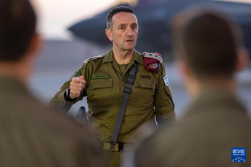 4月15日,以色列国防军总参谋长哈莱维在以色列南部的内瓦提姆空军基地讲话。新华社发(以色列国防军供图)