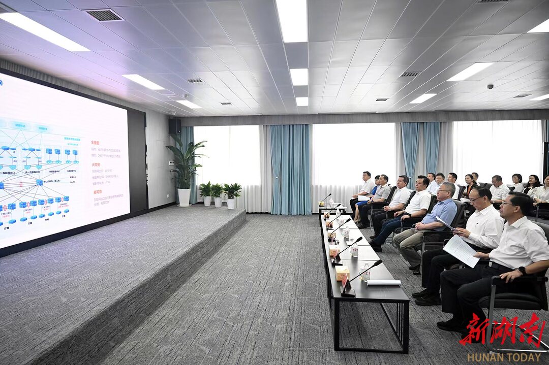 来到省政务服务和大数据中心,沈晓明察看了省电子政务云平台双活机房,详细了解数字政务平台建设、政务服务大厅日常运行、数据资源开放共享和“湘易办”运行等情况,并操作浏览了全省政务信息资源共享网站。