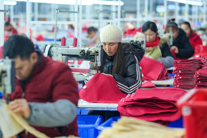 2024年1月18日,社区居民在红安社区的乡村振兴就业车间工作。红安社区是由易地搬迁安置区单独成立的新社区,位于湖南省湘西土家族苗族自治州凤凰县禾库镇。新华社记者 张铖 摄