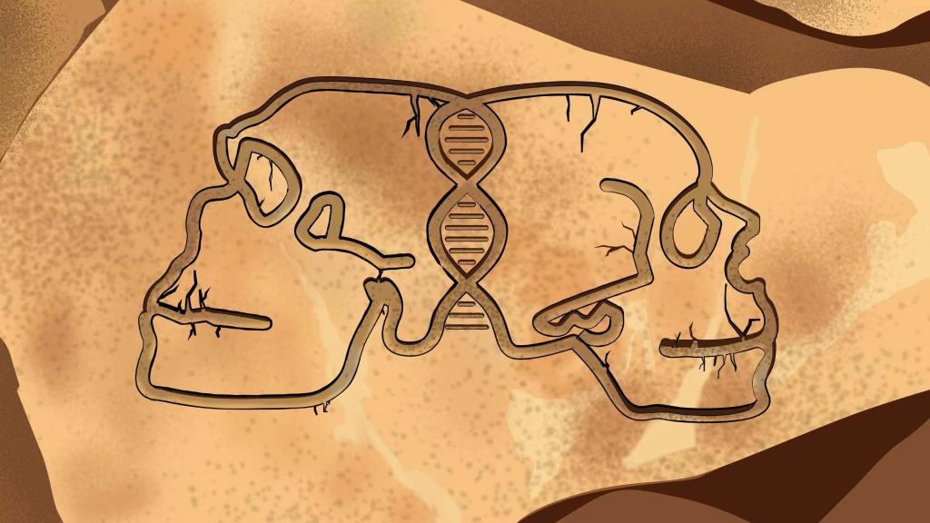 左侧为现代人的头骨,右侧为尼安德特人的头骨,二者在数万年前发生基因交流。(受访者供图)