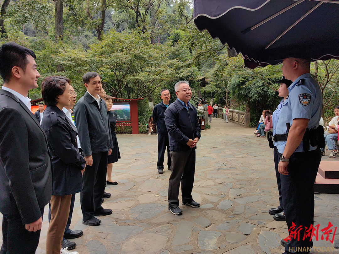 (10月7日,沈晓明在长沙检查岳麓山景区旅游秩序与安全管理工作,看望慰问景区和公安联合执勤点工作人员。)