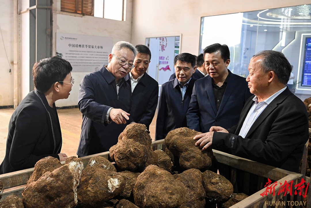 走进洪江市鑫启源粉业有限责任公司和靖州茯苓科技产业园,沈晓明详细了解农产品深加工、县域特色农业产业集群发展等情况,指出要立足本地资源禀赋,做好“土特产”文章,提高农产品附加值,更好带动农民持续增收。来到靖州万亩林下经济暨生态产品价值实现基地,沈晓明察看中药材种植情况,了解基地开展集体林地“三权分置”改革、林业碳票交易等情况,鼓励突出本地特色,发挥道地药材种植优势,推动林下经济高质量发展,积极探索生态产品价值实现路径。