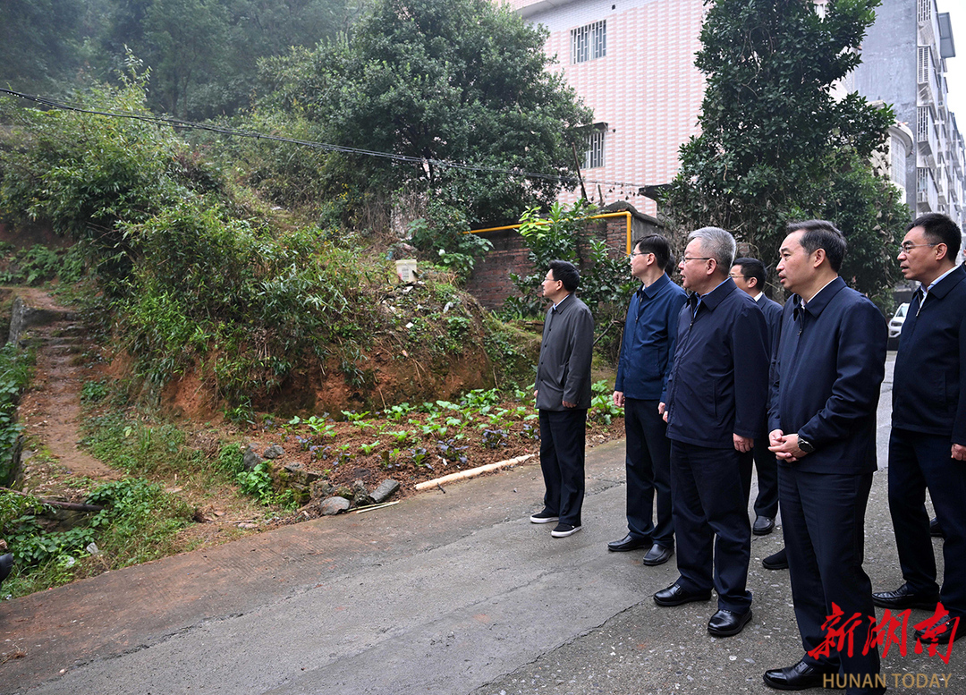 (11月4日,沈晓明来到桂阳县正和镇肖家坳小区地质灾害隐患点暗访。)