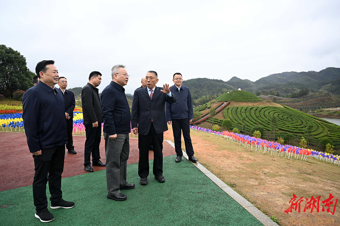 (11月18日,沈晓明来到安化县茶乡花海社区调研。)